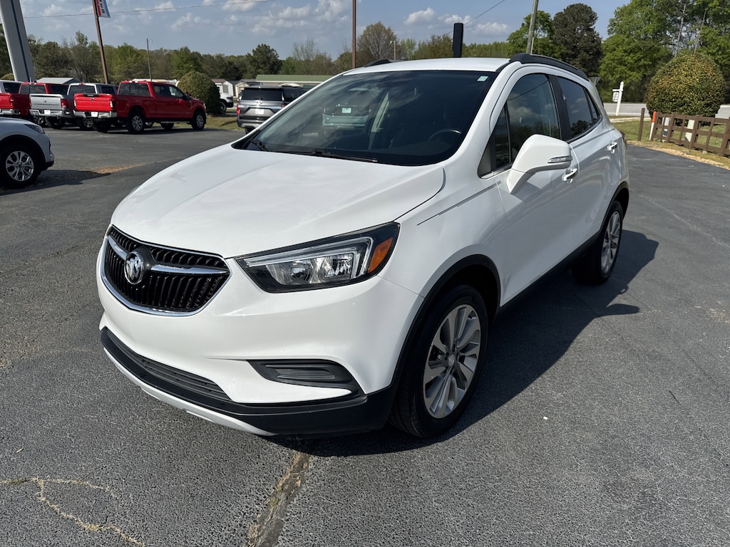 Certified. Summit White 2019 Buick Encore Preferred FWD 6-Speed Automatic Electronic with Overdrive ECOTEC 1.4L I4 SMPI DOHC Turbocharged VVT 2-Way Manual Front Passenger Seat Adjuster, 3.53 Final Drive Axle Ratio, 4-Wheel Disc Brakes, 6 Speakers, 6-Speaker Audio System, 6-Way Power Driver Seat Adjuster, ABS brakes, Air Conditioning, Alloy wheels, AM/FM radio: SiriusXM, Apple CarPlay/Android Auto, Brake assist, Bumpers: body-color, Cloth w/Leatherette Seat Trim, Compass, Delay-off headlights, Driver door bin, Driver vanity mirror, Driver's Seat Mounted Armrest, Dual front impact airbags, Dual front side impact airbags, Electronic Stability Control, Emergency communication system: OnStar and Buick connected services capable, Exterior Parking Camera Rear, Front anti-roll bar, Front Bucket Seats, Front reading lights, Front wheel independent suspension, Fully automatic headlights, Heated door mirrors, Illuminated entry, Knee airbag, Low tire pressure warning, Occupant sensing airbag, Outside temperature display, Overhead airbag, Panic alarm, Passenger door bin, Passenger vanity mirror, Power door mirrors, Power driver seat, Power steering, Power windows, Preferred Equipment Group 1SB, Radio data system, Radio: Buick Infotainment System AM/FM Stereo, Rear seat center armrest, Rear side impact airbag, Rear window defroster, Rear window wiper, Remote keyless entry, Ride & Handling Suspension, Roof rack: rails only, Security system, SiriusXM Radio, Speed control, Speed-sensing steering, Split folding rear seat, Spoiler, Steering wheel mounted audio controls, Tachometer, Telescoping steering wheel, Tilt steering wheel, Traction control, Trip computer, Turn signal indicator mirrors, Variably intermittent wipers, Wheels: 18" Machined-Face Alloy.
