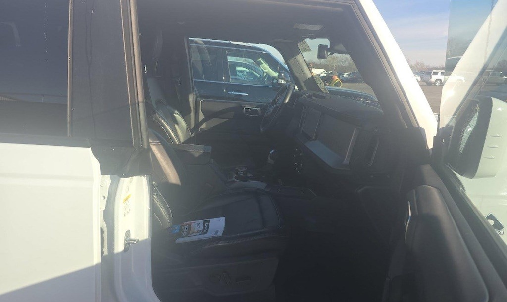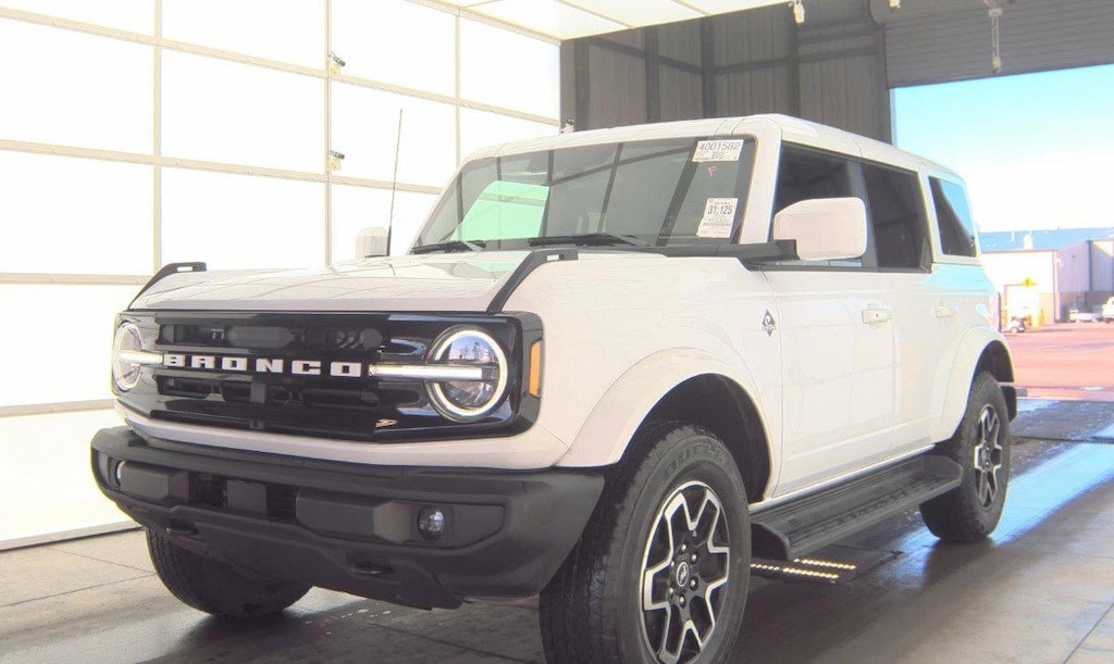 Certified. Oxford White 2025 Ford Bronco Outer Banks 4WD 10-Speed Automatic 2.3L EcoBoost I-4 4-Wheel Disc Brakes, 7 Speakers, ABS brakes, Air Conditioning, Alloy wheels, AM/FM radio: SiriusXM with 360L, AM/FM Stereo, Auto High-beam Headlights, Auto-dimming Rear-View mirror, Automatic temperature control, Brake assist, Compass, Connected Navigation, Delay-off headlights, Driver door bin, Driver vanity mirror, Dual front impact airbags, Dual front side impact airbags, Electronic Stability Control, Emergency communication system: 911 Assist, Equipment Group 312A Mid Package, Exterior Parking Camera Rear, Front anti-roll bar, Front Bucket Seats, Front Center Armrest, Front dual zone A/C, Front fog lights, Front reading lights, Front wheel independent suspension, Fully automatic headlights, Hard Top Sound Deadening Headliner, Heated door mirrors, Heated front seats, Heated Leather-Trimmed/Vinyl Bucket Seats, Heated steering wheel, Illuminated entry, Integrated roll-over protection, Internet access capable: FordPass Connect, Low tire pressure warning, Navigation system: Connected Navigation, Occupant sensing airbag, Overhead airbag, Painted Hard Top, Panic alarm, Passenger door bin, Power door mirrors, Power driver seat, Power passenger seat, Power steering, Power windows, Radio data system, Rear seat center armrest, Remote keyless entry, Security system, SiriusXM w/360L, Split folding rear seat, Steering wheel mounted audio controls, SYNC 4, Tachometer, Telescoping steering wheel, Tilt steering wheel, Traction control, Trip computer, Voltmeter.