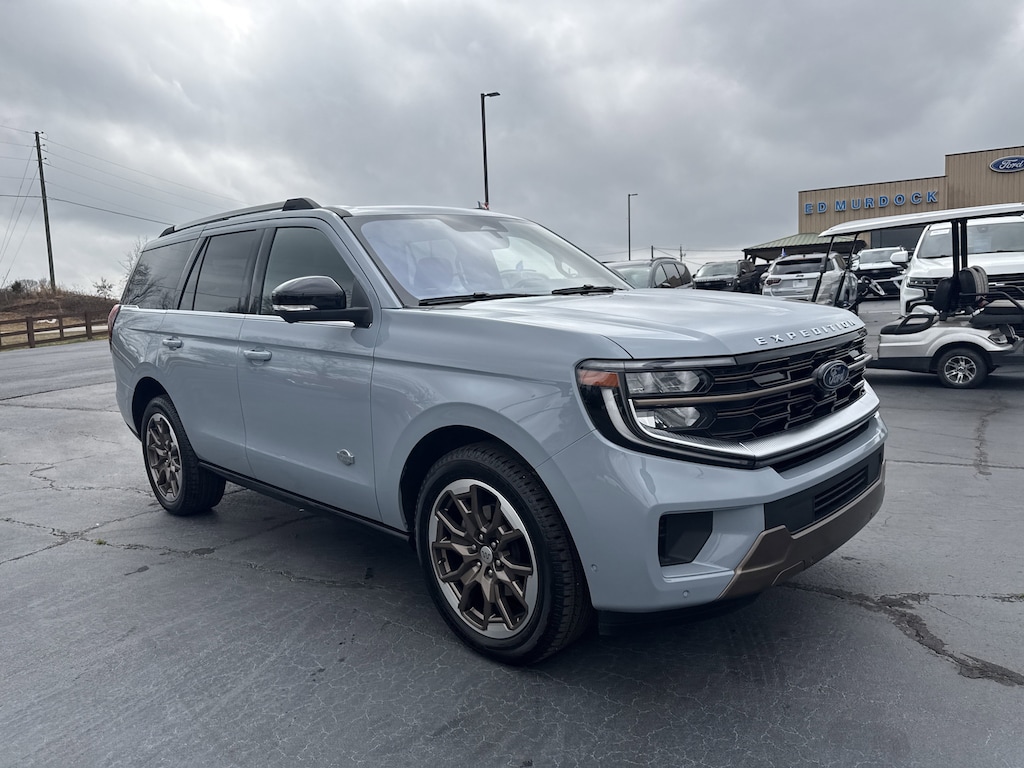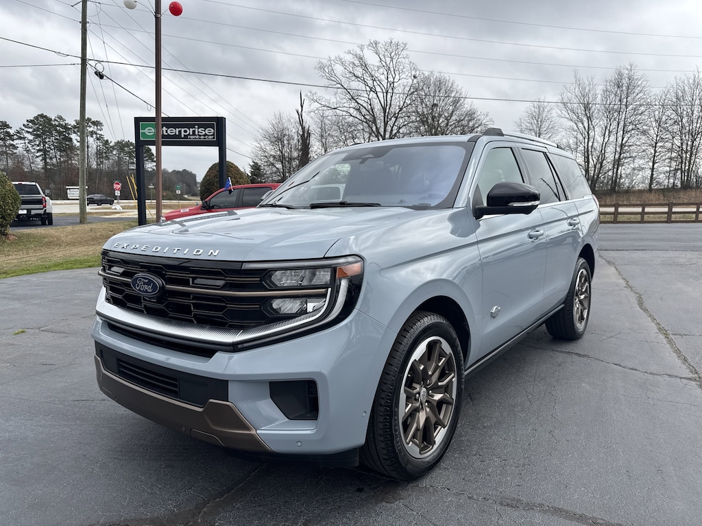 Certified. Glacier Gray Metallic TriCoat 2025 Ford Expedition King Ranch 4WD 10-Speed Automatic EcoBoost 3.5L V6 GTDi DOHC 24V Twin Turbocharged *APPLE CARPLAY/ANDROID AUTO*, 22 Speakers, 3rd row seats: split-bench, 4-Wheel Disc Brakes, ABS brakes, Adaptive suspension, Adjustable pedals, Air Conditioning, Alloy wheels, AM/FM radio: SiriusXM with 360L, Auto High-beam Headlights, Auto-dimming door mirrors, Auto-dimming Rear-View mirror, Automatic temperature control, BlueCruise Equipped (1-Year Plan), Brake assist, Bumpers: body-color, Compass, Connectivity Package (One-Time Purchase), Delay-off headlights, Driver door bin, Driver vanity mirror, Dual front impact airbags, Dual front side impact airbags, Electronic Stability Control, Emergency communication system: 911 Assist, Equipment Group 400A Standard Package, Exterior Parking Camera Rear, Floor Liners, Front & Second Rows (Tray Style), Four wheel independent suspension, Front anti-roll bar, Front Bucket Seats, Front Center Armrest, Front dual zone A/C, Front reading lights, Fully automatic headlights, Garage door transmitter, Genuine wood dashboard insert, Genuine wood door panel insert, Heated door mirrors, Heated front seats, Heated rear seats, Heated steering wheel, Heated/Vent Prem Del Rio Lthr Fr Captain's Chairs, Illuminated entry, Leather steering wheel, Low tire pressure warning, Memory seat, Navigation System, Occupant sensing airbag, Outside temperature display, Overhead airbag, Overhead console, Panic alarm, Passenger door bin, Passenger vanity mirror, Pedal memory, Power driver seat, Power moonroof: Vista Roof, Power passenger seat, Power steering, Power windows, Radio data system, Radio: B&O Unleashed Sound System by Bang & Olufsen, Rear air conditioning, Rear anti-roll bar, Rear reading lights, Rear window defroster, Rear window wiper, Reclining 3rd row seat, Remote keyless entry, Security system, SiriusXM w/360L, Speed control, Speed-sensing steering, Split folding rear seat, Spoiler, Steering wheel memory, Steering wheel mounted audio controls, Tachometer, Telescoping steering wheel, Tilt steering wheel, Traction control, Trip computer, Turn signal indicator mirrors, Ventilated front seats, Voltmeter, Wheels: 22" Sinister Brown w/Diamond Cut Face Alum.