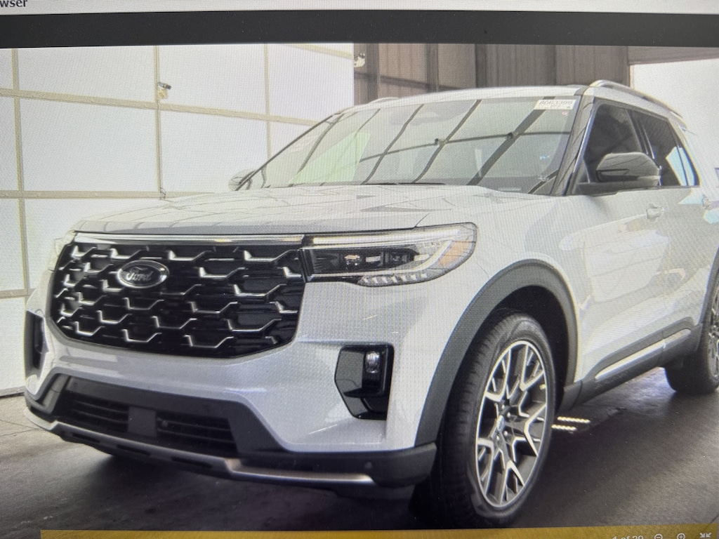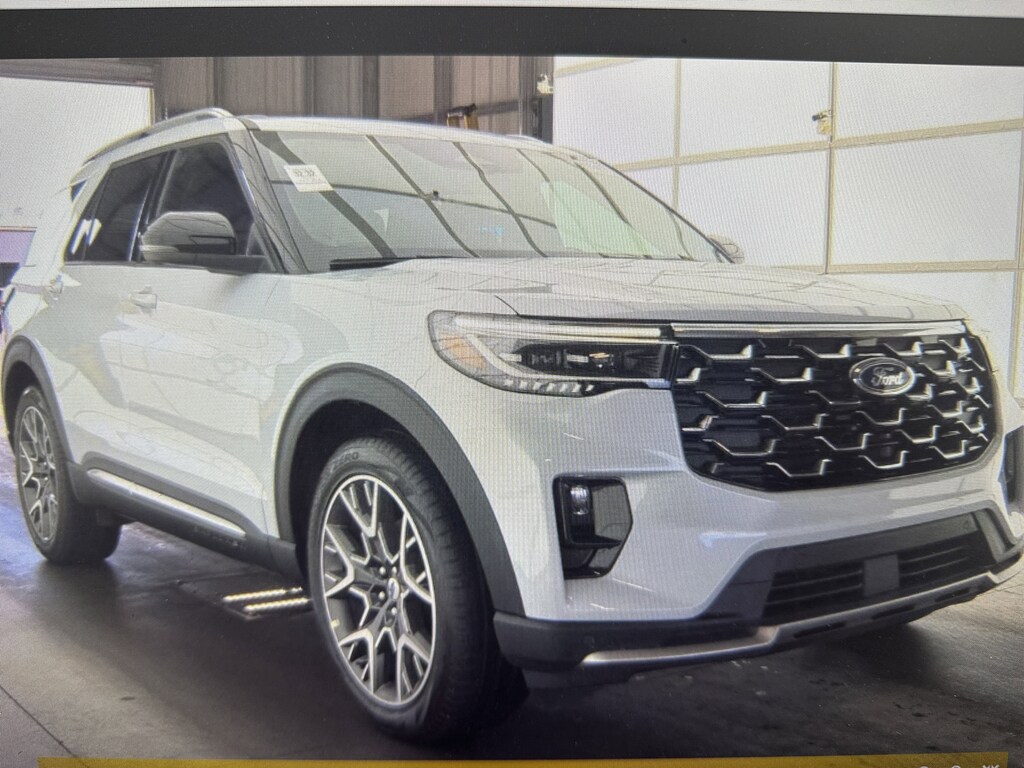 Certified. White Metallic 2025 Ford Explorer Platinum RWD 10-Speed Automatic 3.0L EcoBoost V6 14 Speakers, 3rd row seats: bench, 4-Wheel Disc Brakes, ABS brakes, Air Conditioning, Alloy wheels, AM/FM radio: SiriusXM with 360L, Auto High-beam Headlights, Automatic temperature control, Brake assist, Delay-off headlights, Dual front impact airbags, Dual front side impact airbags, Electronic Stability Control, Emergency communication system: 911 Assist, Equipment Group 600A Standard Package, Four wheel independent suspension, Front anti-roll bar, Front Bucket Seats, Front Center Armrest, Front dual zone A/C, Front fog lights, Fully automatic headlights, Heated front seats, Heated rear seats, Leather Seating Surfaces Sport Captain Chairs, Low tire pressure warning, Lux Leather Package, Memory seat, Navigation System, Overhead airbag, Platinum Badges on Front Row Seats, Power driver seat, Power Liftgate, Power steering, Power windows, Quilting & Stitching on Door Panels, Quilting & Stitching on Seats, Radio data system, Radio: B&O Sound System by Bang & Olufsen w/HD, Rain sensing wipers, Rear air conditioning, Rear anti-roll bar, Rear reading lights, Rear window defroster, Remote keyless entry, Security system, Speed-sensing steering, Speed-Sensitive Wipers, Steering wheel mounted audio controls, Tachometer, Telescoping steering wheel, Tilt steering wheel, Traction control, Trip computer, Ultimate Package, Ventilated front seats, Wheels: 21" Dark Alloy-Painted Machined Aluminum.