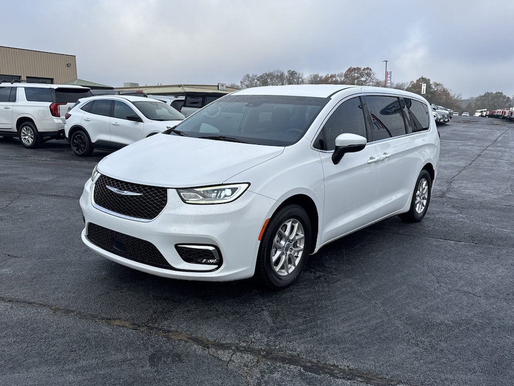 Bright White Clearcoat 2023 Chrysler Pacifica Touring L FWD 9-Speed 948TE Automatic 3.6L V6 24V VVT 10.1" Touchscreen Display, 4-Wheel Disc Brakes, 6 Speakers, ABS brakes, AM/FM radio: SiriusXM, Apple CarPlay, Apple CarPlay/Android Auto, Audio memory, Caprice Leatherette Bucket Seats, Compass, Disassociated Touchscreen Display, Driver door bin, Driver vanity mirror, Front reading lights, Google Android Auto, GPS Antenna Input, Integrated Active Noise Cancellation, Integrated Center Stack Radio, Quick Order Package 27L, Radio data system, Radio: Uconnect 5 w/10.1" Display, Spoiler, Steering wheel mounted audio controls, Touring Suspension, Traction control, Turn signal indicator mirrors.