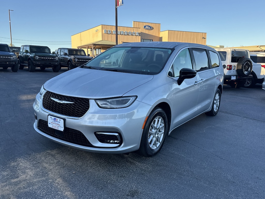 Silver Mist Clearcoat 2024 Chrysler Pacifica Touring L FWD 9-Speed 948TE Automatic 3.6L V6 24V VVT 10.1" Touchscreen Display, 6 Speakers, Air Conditioning, AM/FM radio: SiriusXM, Apple CarPlay, Apple CarPlay/Android Auto, Automatic temperature control, Bumpers: body-color, Caprice Leatherette Bucket Seats, Disassociated Touchscreen Display, Driver door bin, Driver vanity mirror, Front dual zone A/C, Front reading lights, Google Android Auto, GPS Antenna Input, Heated door mirrors, Heated steering wheel, Integrated Active Noise Cancellation, Integrated Center Stack Radio, Power door mirrors, Radio data system, Radio: Uconnect 5 w/10.1" Display, Rear air conditioning, Spoiler, Touring Suspension, Turn signal indicator mirrors.