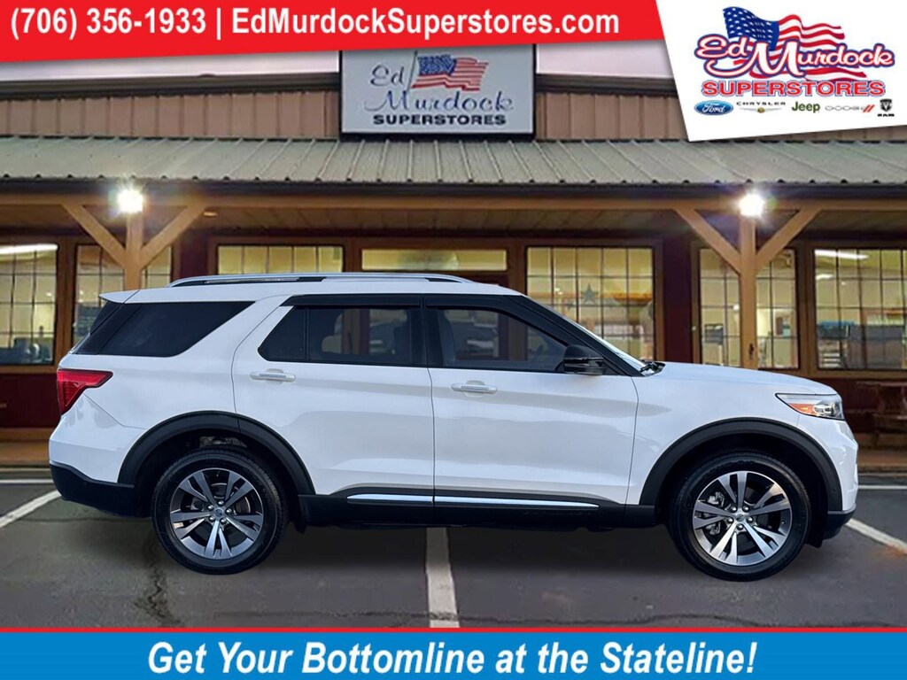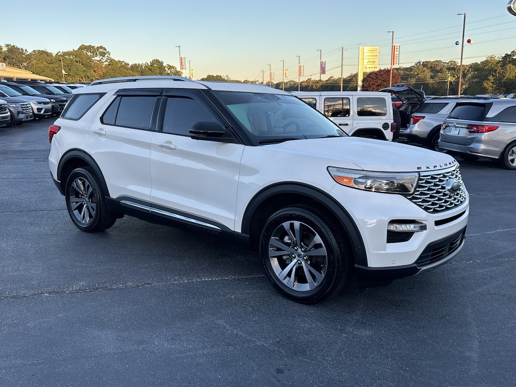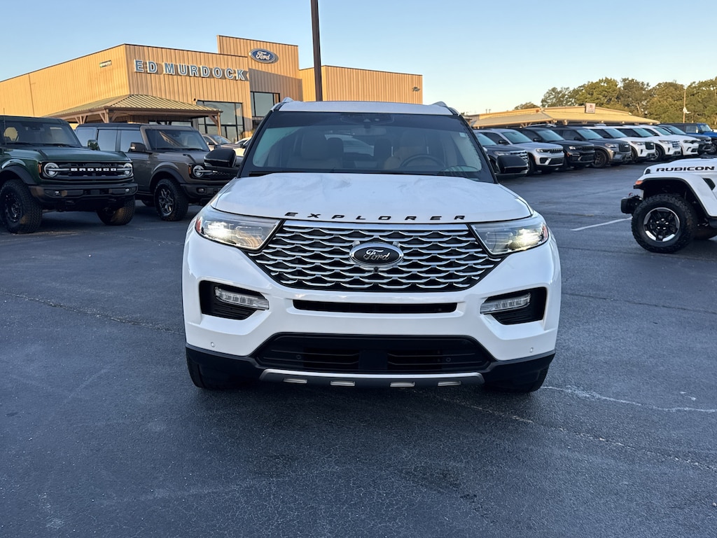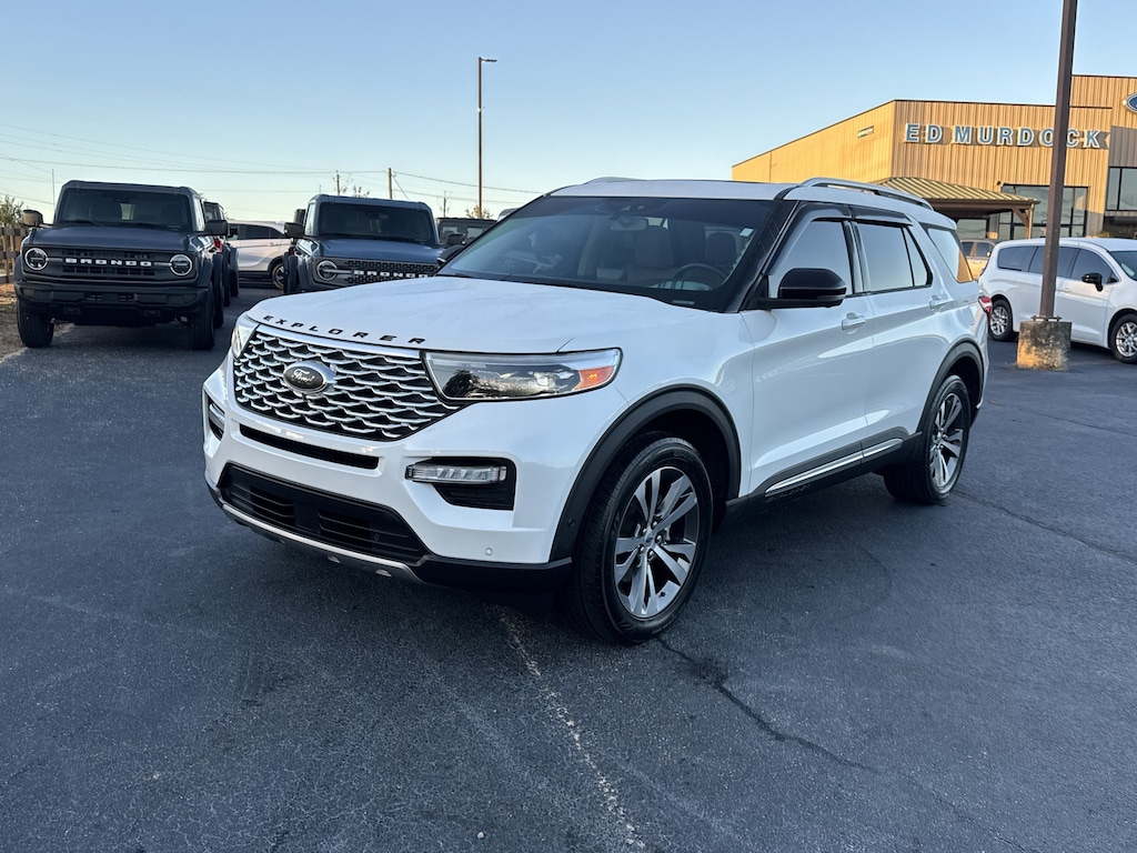 White 2020 Ford Explorer Platinum 4WD 10-Speed Automatic 3.0L EcoBoost V6 10.1" LCD Capacitive Portrait Touchscreen, 12 Speakers, 2 Additional Speakers, Air Conditioning, Automatic temperature control, Equipment Group 600A, FordPass Connect, Front dual zone A/C, Leather Htd/Ventilated Sport Captain's Chairs, Memory seat, Navigation System, Power driver seat, Power Liftgate, Power steering, Power windows, Premium Technology Package, Radio data system, Radio: B&O Sound System by Bang & Olufsen, Rear air conditioning, Rear window defroster, Remote keyless entry, Steering wheel memory, Steering wheel mounted audio controls, SYNC 3 Communications & Entertainment System, Voice-Activated Touchscreen Navigation System.