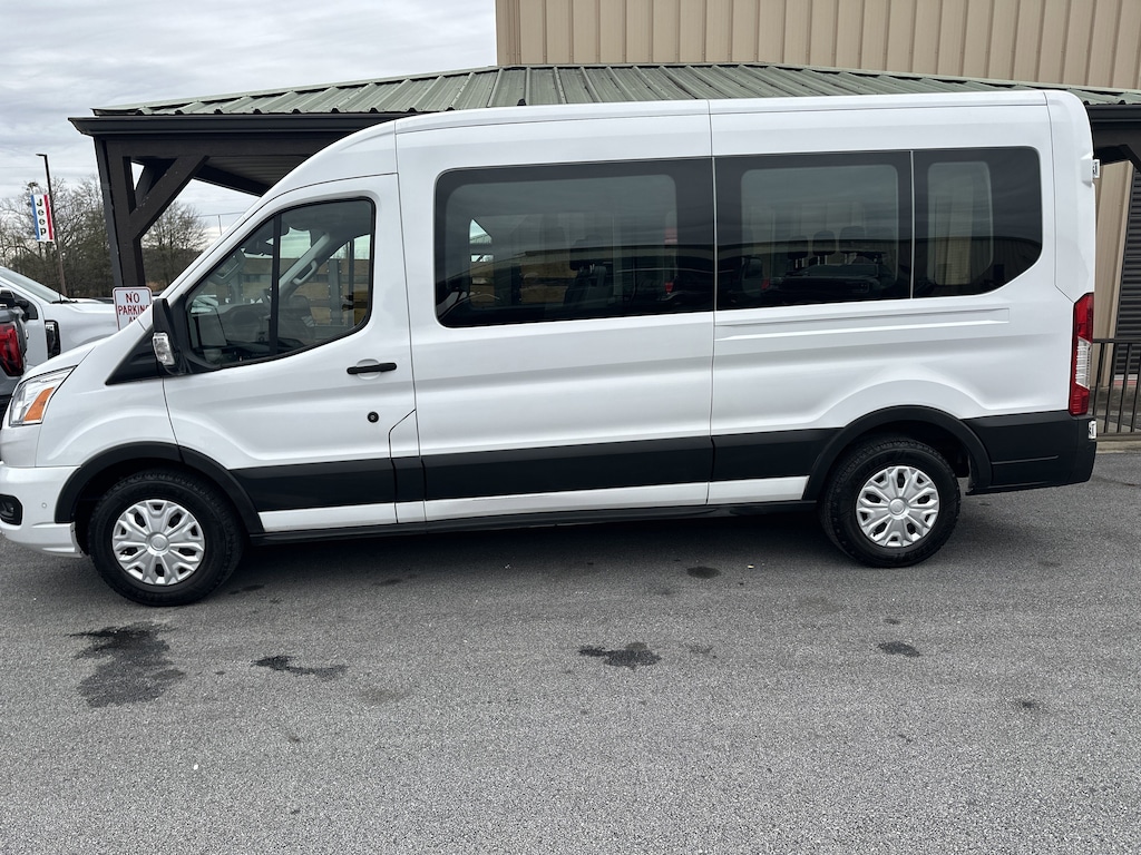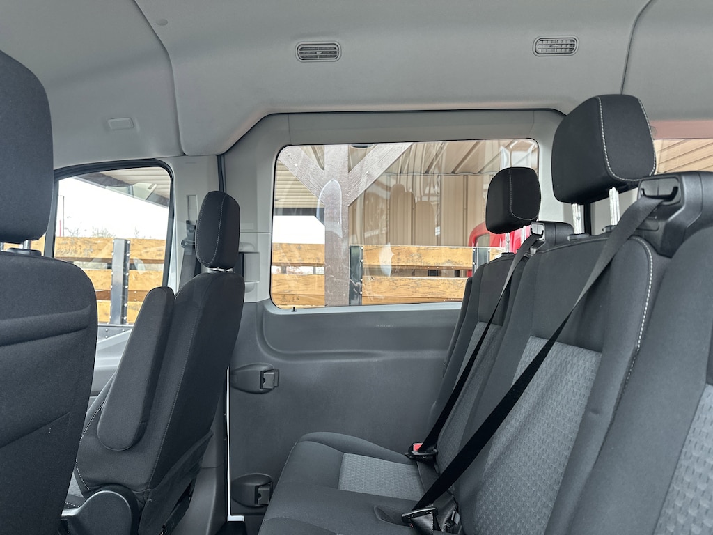 Oxford White 2021 Ford Transit-350 XLT RWD 10-Speed Automatic with Overdrive V6 3rd row seats: split-bench, 4th-Row Bench Seat, 8 Speakers, 8 Speakers (4 Front/4 Rear), ABS brakes, Air Conditioning, AM/FM radio, Auto High-beam Headlights, BLIS Blind Spot Information System, Delay-off headlights, Dual front impact airbags, Dual front side impact airbags, Exterior Parking Camera Rear, Front Bucket Seats, Front Fog Lamps, Front reading lights, Fully automatic headlights, Illuminated entry, Large Center Console, Passenger door bin, Passenger seat mounted armrest, Passenger vanity mirror, Power steering, Power windows, Radio: AM/FM Stereo w/SYNC 3, Rear air conditioning, Rear window defroster, Remote keyless entry, Short-Arm Pwr-Folding Heated Pwr Adjusting Mirrors, Side Sensing System, Steering wheel mounted audio controls, SYNC 3 Communications & Entertainment System, Tachometer, Telescoping steering wheel, Tilt steering wheel.