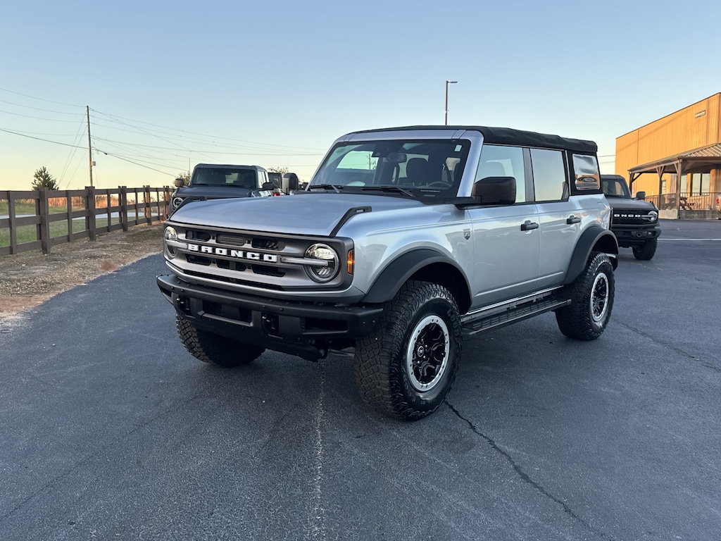 Iconic Silver Metallic 2023 Ford Bronco Big Bend 4WD 10-Speed Automatic 2.3L EcoBoost I-4 7 Speakers, ABS brakes, Air Conditioning, Alloy wheels, AM/FM radio: SiriusXM with 360L, AM/FM Stereo, Compass, Driver door bin, Driver vanity mirror, Dual front impact airbags, Dual front side impact airbags, Electronic Stability Control, Emergency communication system: 911 Assist, Front anti-roll bar, Front Bucket Seats, Front Center Armrest, Front reading lights, Front wheel independent suspension, Heated door mirrors, Illuminated entry, Integrated roll-over protection, Low tire pressure warning, Radio data system, Remote keyless entry, SiriusXM Radio w/360L, Speed control, SYNC 4, Tachometer, Telescoping steering wheel, Tilt steering wheel, Traction control, Trip computer.