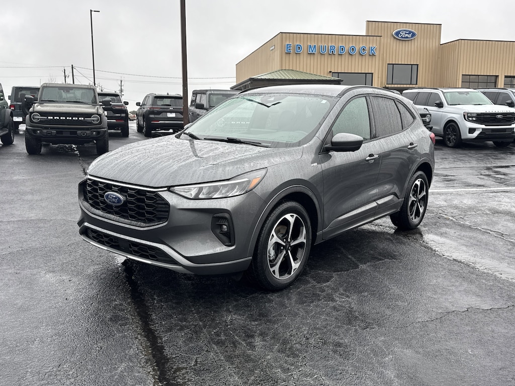 Carbonized Gray Metallic 2023 Ford Escape ST-Line Select AWD 8-Speed Automatic EcoBoost 2.0L I4 GTDi DOHC Turbocharged VCT 10-Way Power Driver's Seat, 12.3" Productivity Screen in Instrument Cluster, 2.91 Axle Ratio, 360-Degree Camera w/Split View, 6 Speakers, 6-Way Power Passenger Seat, Alloy wheels, AM/FM radio: SiriusXM, AM/FM Stereo, Body Color Mirrors, Brake assist, Class II Trailer Tow Package, Compass, Connected Built-In Navigation, Driver door bin, Driver vanity mirror, Electronic Stability Control, Equipment Group 401A, Ford Co-Pilot360 Assist 2.0, FordPass Connect, Four wheel independent suspension, Front & Rear Floor Liners w/Carpet Mats, Front reading lights, HD Radio, Heated steering wheel, Heated Vinyl/Cloth Front Sport Contour Bucket Seats, Illuminated entry, Intelligent Adaptive Cruise Control w/Stop-and-Go, Intersection Assist, Memory Package, Outside temperature display, Overhead console, Panic alarm, Passenger door bin, Passenger vanity mirror, Pedestrian Alert Sounder, Power driver seat, Power Liftgate, Power steering, Power windows, Radio data system, Radio: B&O Sound System by Bang & Olufsen, Rear Parking Sensor, Rear window wiper, Remote keyless entry, Reverse Brake Assist, SecuriCode Keyless Entry Keypad, Speed Sign Recognition, Speed-sensing steering, Speed-Sensitive Wipers, Steering wheel mounted audio controls, SYNC 4, SYNC 4 w/Enhanced Voice Recognition, Tech Pack #2, Traction control, Variably intermittent wipers, Wheels: 18" Rock Metallic Painted Aluminum, Wheels: 19" Machined-Face Ebony-Painted Aluminum, Wireless Charging Pad.