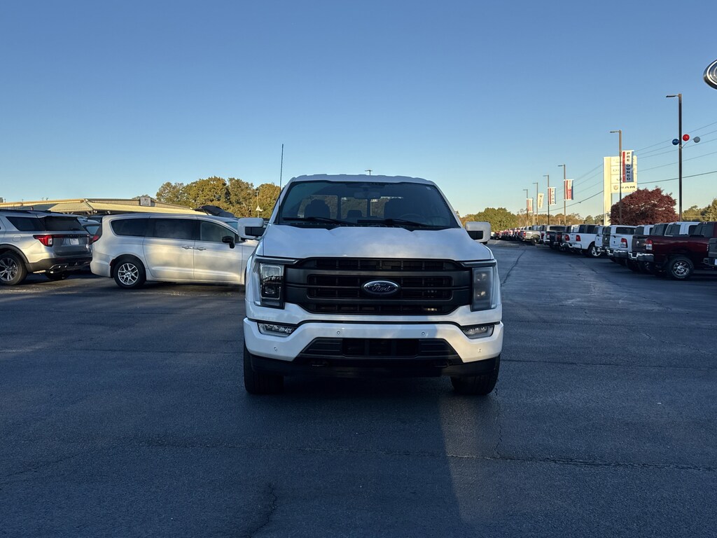 Star White Metallic Tri-Coat 2023 Ford F-150 Lariat 4WD 10-Speed Automatic 3.5L V6 EcoBoost 2nd Row Heated Seats, 4-Wheel Disc Brakes, 8 Speakers, ABS brakes, Accent-Color Angular Step Bars, Adjustable pedals, Air Conditioning, AM/FM radio: SiriusXM with 360L, Auto High-beam Headlights, Auto-dimming Rear-View mirror, Automatic temperature control, Body-Color Front & Rear Bumpers, Box Side Decals, Brake assist, Center High-Mounted Stop Lamp CHMSL Camera Removal, Chrome Single-Tip Exhaust, Compass, Connected Built-In Navigation, Dark 2-Bar & 1 Minor Bar Style Grille, Delay-off headlights, Driver door bin, Dual front impact airbags, Dual front side impact airbags, Electronic Stability Control, Emergency communication system: SYNC 4 911 Assist, Equipment Group 502A High, Evasive Steering Assist, Exterior Parking Camera Rear, Ford Co-Pilot360 Assist 2.0, Front anti-roll bar, Front dual zone A/C, Front fog lights, Front reading lights, Front wheel independent suspension, Fully automatic headlights, Garage door transmitter, Heated steering wheel, Illuminated entry, Intelligent Adaptive Cruise Control w/Stop & Go, Interior Work Surface, Intersection Assist, Lariat Sport Appearance Package, LED Projector w/Dynamic Bending Headlamps, Low tire pressure warning, Memory seat, Occupant sensing airbag, Outside temperature display, Overhead airbag, Pedal memory, Power driver seat, Power steering, Power Tilt/Telescoping Steering Column w/Memory, Power windows, Radio data system, Radio: B&O Sound System by Bang & Olufsen, Rain-Sensing Wipers, Rear window defroster, Remote keyless entry, Rock Crawl Mode, Speed Sign Recognition, Speed-sensing steering, Steering Wheel Heat Removal (DISC), Steering wheel mounted audio controls, SYNC 4 w/Enhanced Voice Recognition, Traction control, Turn signal indicator mirrors, Wheels: 20" Chrome-Like PVD, Wireless Charging Pad.