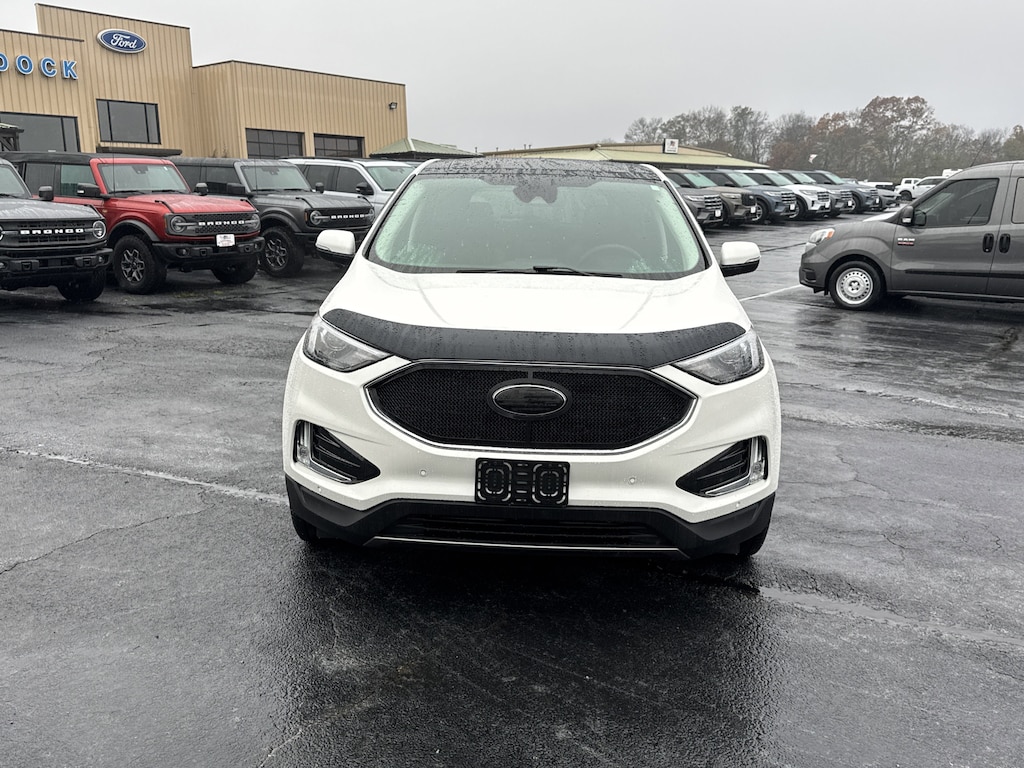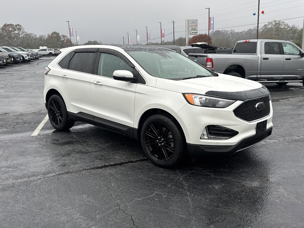 Star White Metallic Tri-Coat 2024 Ford Edge Titanium AWD 8-Speed Automatic EcoBoost 2.0L I4 GTDi DOHC Turbocharged VCT *BACKUP CAMERA*, *APPLE CARPLAY/ANDROID AUTO*, *HEATED LEATHER SEATS*, 12 Speakers, 4-Wheel Disc Brakes, ABS brakes, ActiveX-Trimmed Heated Sport Bucket Seats, Air Conditioning, AM/FM radio: SiriusXM with 360L, Auto High-beam Headlights, Auto-dimming Rear-View mirror, Automatic temperature control, Brake assist, Bumpers: body-color, Compass, Delay-off headlights, Driver door bin, Driver vanity mirror, Dual front impact airbags, Dual front side impact airbags, Electronic Stability Control, Emergency communication system: SYNC 4 911 Assist, Equipment Group 300A, FordPass Connect, Four wheel independent suspension, Front anti-roll bar, Front Bucket Seats, Front Center Armrest w/Storage, Front dual zone A/C, Front fog lights, Front reading lights, Fully automatic headlights, Heated door mirrors, Heated front seats, Heated steering wheel, Illuminated entry, Knee airbag, Leather steering wheel, Low tire pressure warning, Memory seat, Occupant sensing airbag, Outside temperature display, Overhead airbag, Overhead console, Panic alarm, Panoramic Vista Roof, Passenger door bin, Passenger vanity mirror, Power door mirrors, Power driver seat, Power Liftgate, Power passenger seat, Power steering, Power windows, Radio: B&O Sound System by Bang & Olufsen, Rain sensing wipers, Rear anti-roll bar, Rear reading lights, Rear seat center armrest, Rear window defroster, Rear window wiper, Remote keyless entry, SiriusXM w/360L, Speed control, Speed-Sensitive Wipers, Split folding rear seat, Spoiler, Steering wheel mounted audio controls, SYNC 4A w/Enhanced Voice Recognition, Traction control, Turn signal indicator mirrors, Variably intermittent wipers.