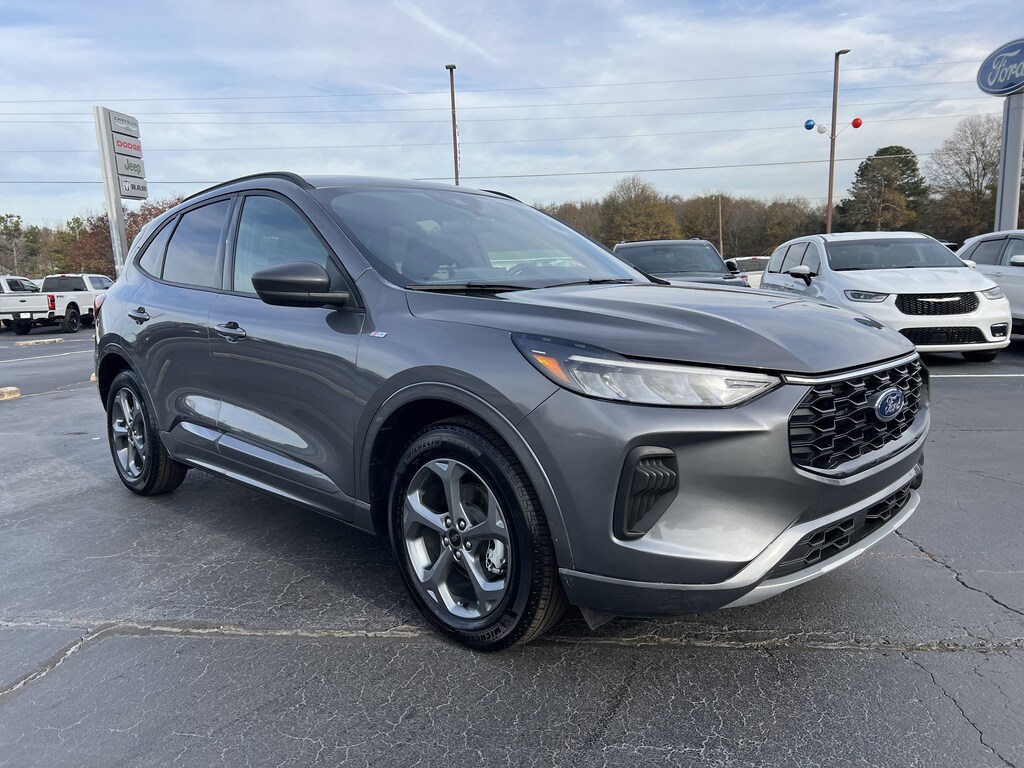 Carbonized Gray Metallic 2024 Ford Escape ST-Line FWD 8-Speed Automatic 1.5L EcoBoost 4-Wheel Disc Brakes, 6 Speakers, ABS brakes, Adaptive Cruise Control w/Stop-and-Go, Air Conditioning, Alloy wheels, AM/FM radio: SiriusXM, AM/FM Stereo, Auto High-beam Headlights, Automatic temperature control, Brake assist, Bumpers: body-color, Connected Navigation, Delay-off headlights, Dual front impact airbags, Dual front side impact airbags, Electronic Stability Control, Emergency communication system: SYNC 4 911 Assist, Equipment Group 300A, Exterior Parking Camera Rear, Ford Co-Pilot360 Assist+, FordPass Connect, Four wheel independent suspension, Front anti-roll bar, Front dual zone A/C, Front License Plate Bracket, Fully automatic headlights, Knee airbag, Low tire pressure warning, Occupant sensing airbag, Overhead airbag, Passenger door bin, Power driver seat, Power Liftgate, Power steering, Power windows, Radio data system, Rear anti-roll bar, Rear Parking Sensor, Rear window defroster, Rear-View Camera, Remote keyless entry, Roof rack: rails only, Speed control, Speed Sign Recognition, Speed-sensing steering, Speed-Sensitive Wipers, Sport steering wheel, Steering wheel mounted audio controls, SYNC 4, SYNC 4 w/Enhanced Voice Recognition, Tachometer, Tech Pack #1, Traction control, Vinyl/Cloth Front Sport Contour Bucket Seats, Wheels: 18" Rock Metallic Painted Aluminum.