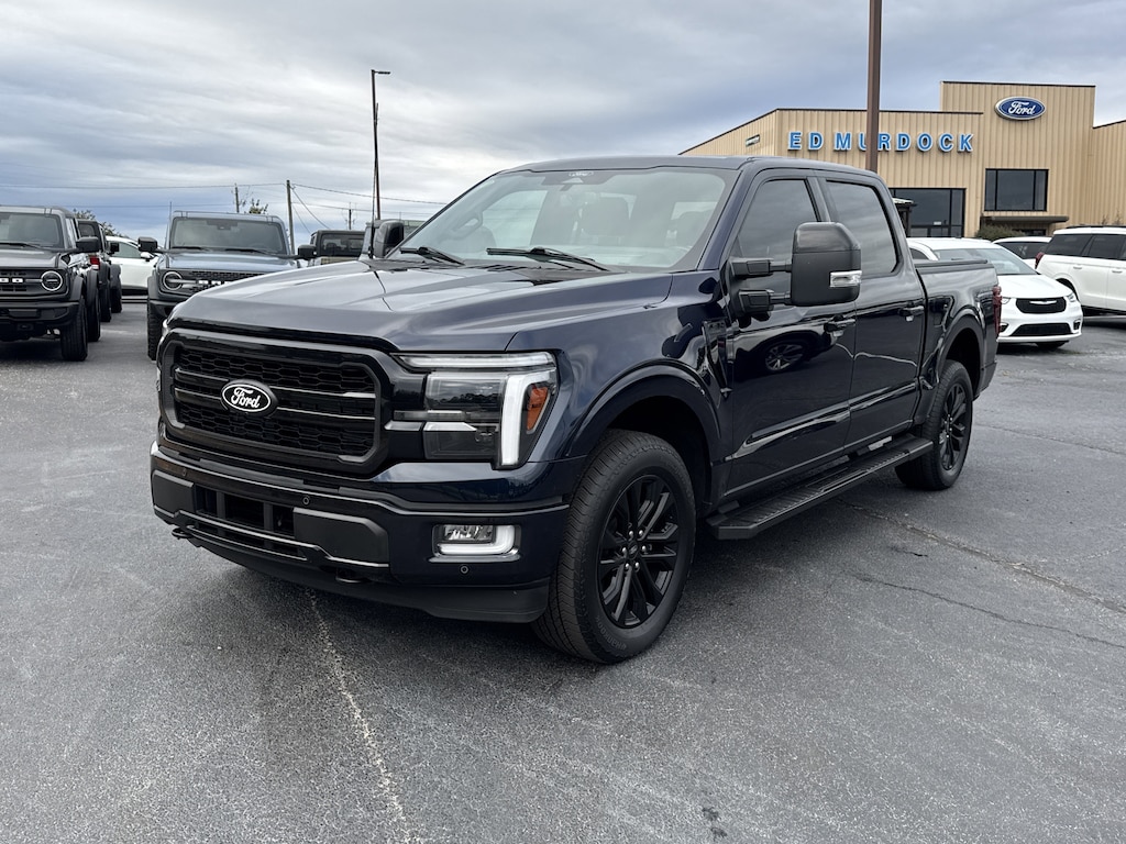 Antimatter Blue Metallic 2024 Ford F-150 Lariat 4WD 10-Speed Automatic 3.5L V6 EcoBoost MSRP $80,485.00, 2nd Row Heated Seats, 4 Pickup Box Tie-Down Plates, 4-Wheel Disc Brakes, 6" Extended Chrome Running Boards, 6" Extended Running Boards, 8 Speakers, ABS brakes, Adjustable pedals, Air Conditioning, AM/FM radio: SiriusXM with 360L, Auto High-beam Headlights, Auto-dimming door mirrors, Auto-dimming Rear-View mirror, Automatic temperature control, Bed Utility Package, Brake assist, Bumpers: chrome, Compass, Console Worksurface, Delay-off headlights, Driver door bin, Driver vanity mirror, Dual front impact airbags, Dual front side impact airbags, Electronic Stability Control, Emergency communication system: SYNC 4 911 Assist, Engine Block Heater, Equipment Group 502A High, Front anti-roll bar, Front Bucket Seats, Front Center Armrest, Front dual zone A/C, Front fog lights, Front reading lights, Front wheel independent suspension, Fully automatic headlights, Garage door transmitter, GVWR: 7,100 lbs Payload Package, Heads-Up Display, Heated door mirrors, Heated front seats, Heated steering wheel, Illuminated entry, Leather-Trimmed Bucket Seats, LED Box Lighting, LED Sideview Mirror Spotlights, Low tire pressure warning, Memory seat, Mobile Office Package, Navigation system: Connected Navigation, Occupant sensing airbag, Outside temperature display, Overhead airbag, Overhead console, Panic alarm, Partitioned Lockable Rear Storage, Passenger vanity mirror, Pedal memory, Power door mirrors, Power driver seat, Power steering, Power Tailgate, Power Telescoping/Glass/Folding Trailer Tow Mirrors, Power windows, Pro Access Tailgate, Radio data system, Radio: B&O Sound System by Bang & Olufsen, Radio: B&O Unleashed Sound System by Bang & Olufsen, Rain sensing wipers, Rear reading lights, Rear seat center armrest, Rear step bumper, Rear window defroster, Remote keyless entry, Retractable Rear Center Step, Security system, Speed control, Steering wheel mounted audio controls, SYNC 4 w/Enhanced Voice Recognition, Tachometer, Telescoping steering wheel, Tilt steering wheel, Tough Bed Spray-In Bedliner, Traction control, Tray Style Floor Liner, Trip computer, Turn signal indicator mirrors, Twin Panel Moonroof, Variably intermittent wipers, Voltmeter, Wheel Well Liner, Wireless Charging.