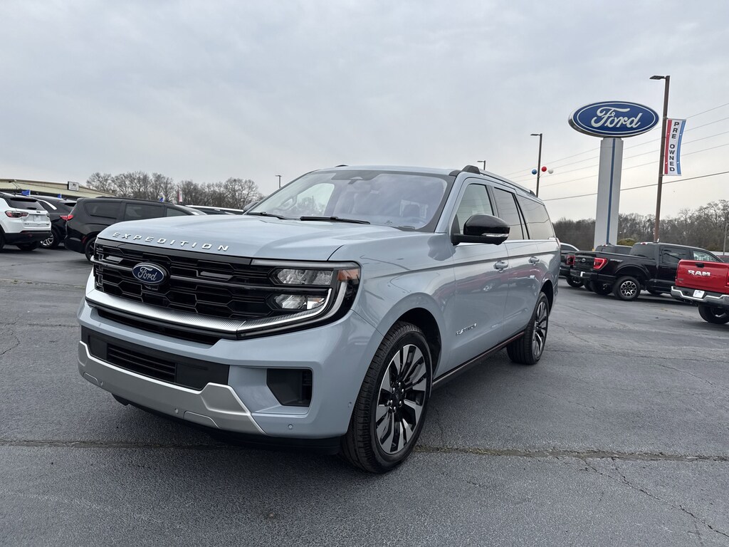 Certified. Glacier Gray Metallic TriCoat 2025 Ford Expedition Max Platinum 4WD 10-Speed Automatic EcoBoost 3.5L V6 GTDi DOHC 24V Twin Turbocharged *3RD ROW SEATING*, 10 Speakers, 2nd Row Power-Folding Captain's Chairs, 4-Wheel Disc Brakes, ABS brakes, Adjustable pedals, Air Conditioning, Alloy wheels, AM/FM radio: SiriusXM with 360L, Apple CarPlay/Android Auto, Auto High-beam Headlights, Auto-dimming door mirrors, Auto-dimming Rear-View mirror, Automatic temperature control, BlueCruise Equipped (1-Year Plan), Brake assist, Bumpers: body-color, Compass, Connectivity Package (One-Time Purchase), Continuous Control Damping Suspension, Delay-off headlights, Driver door bin, Driver vanity mirror, Driver's Package, Dual front impact airbags, Dual front side impact airbags, Electronic Stability Control, Emergency communication system: 911 Assist, Equipment Group 600A Standard Package, Exterior Parking Camera Rear, Floor Liners, Front & Second Rows (Tray Style), Four wheel independent suspension, Front anti-roll bar, Front Bucket Seats, Front Center Armrest, Front dual zone A/C, Front reading lights, Fully automatic headlights, Garage door transmitter, Genuine wood dashboard insert, Genuine wood door panel insert, Heated & Ventilated Leather Front Captain's Chairs, Heated door mirrors, Heated front seats, Heated rear seats, Heated steering wheel, Illuminated entry, Leather steering wheel, Low tire pressure warning, Memory seat, Navigation System, Occupant sensing airbag, Outside temperature display, Overhead airbag, Overhead console, Panic alarm, Passenger door bin, Passenger vanity mirror, Pedal memory, Power door mirrors, Power driver seat, Power moonroof: Vista Roof, Power passenger seat, Power steering, Power windows, Radio data system, Radio: B&O Sound System by Bang & Olufsen, Radio: B&O Unleashed Sound System by Bang & Olufsen, Rear air conditioning, Rear anti-roll bar, Rear window defroster, Reclining 3rd row seat, Remote keyless entry, Security system, SiriusXM w/360L, Speed control, Speed-sensing steering, Split folding rear seat, Spoiler, Steering wheel memory, Steering wheel mounted audio controls, Tachometer, Telescoping steering wheel, Tilt steering wheel, Traction control, Trip computer, Turn signal indicator mirrors, Ventilated front seats, Voltmeter.