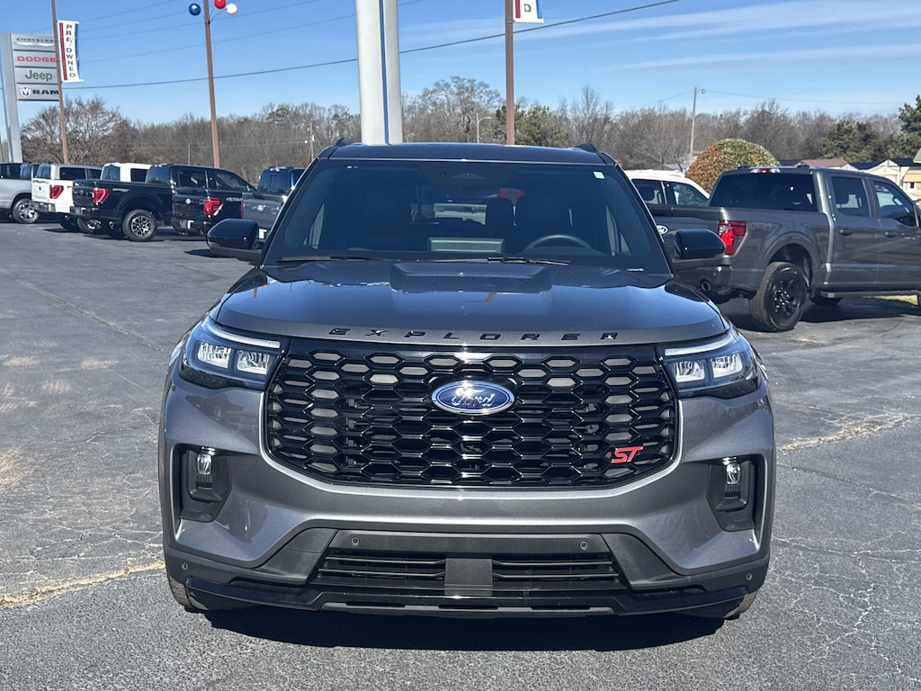 Certified. Gray Metallic 2025 Ford Explorer ST 4WD 10-Speed Automatic 3.0L EcoBoost V6 10 Speakers, 3rd row seats: bench, 4-Wheel Disc Brakes, Air Conditioning, AM/FM radio: SiriusXM with 360L, Apple CarPlay/Android Auto, Auto-dimming Rear-View mirror, Automatic temperature control, B&O Sound System by Bang & Olufsen, Brake assist, Bumpers: body-color, Driver vanity mirror, Dual front impact airbags, Electronic Stability Control, Emergency communication system: 911 Assist, Equipment Group 400A Standard Package, Exterior Parking Camera Rear, Four wheel independent suspension, Front & 2nd Rows Floor Liners w/Carpet Floor Mats, Front Bucket Seats, Front Center Armrest, Front dual zone A/C, Front reading lights, Garage door transmitter, Heated door mirrors, Heated front seats, Heated rear seats, Heated steering wheel, Heated/Ventilated Miko Sport Captain's Chairs, Knee airbag, Low tire pressure warning, Multicontour Seats w/Front Active Motion, Navigation System, Occupant sensing airbag, Overhead airbag, Panic alarm, Panoramic Vista Roof w/Power Shade, Power door mirrors, Power driver seat, Power Liftgate, Power passenger seat, Power steering, Power windows, Radio: B&O Sound System by Bang & Olufsen, Rear air conditioning, Rear window defroster, Remote keyless entry, Security system, Speed control, Spoiler, Steering wheel mounted audio controls, Sun and Sound Package, Turn signal indicator mirrors, Ventilated front seats, Wheels: 21" Magnetite-Painted Aluminum.