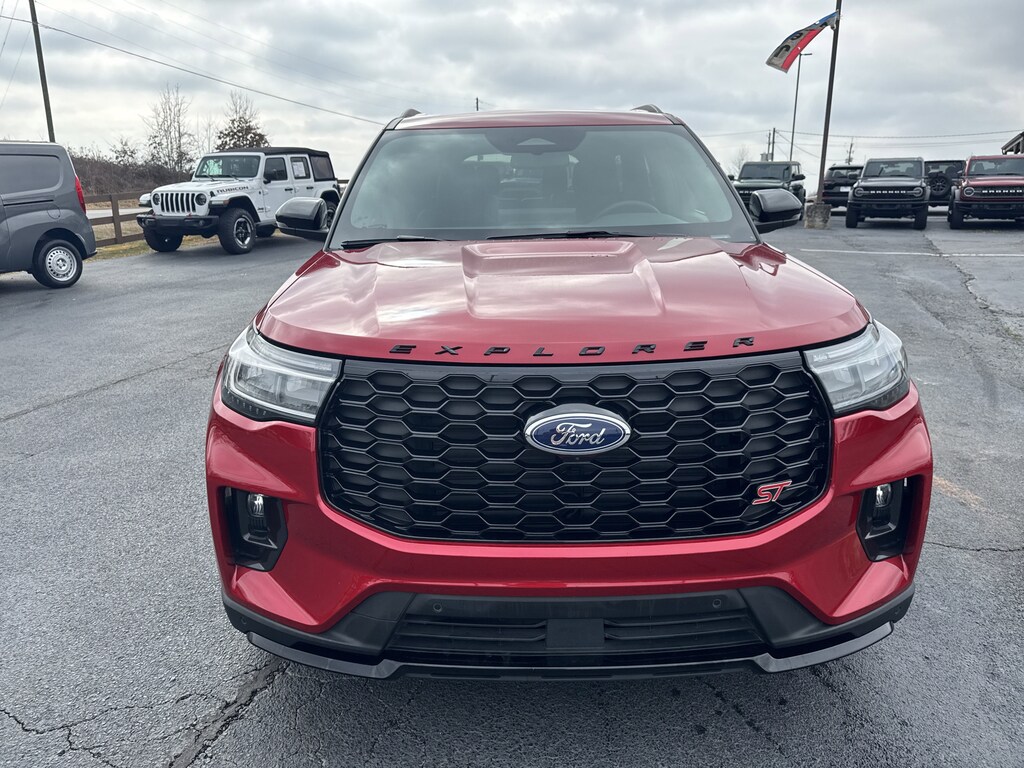 Certified. Red Metallic 2025 Ford Explorer ST 4WD 10-Speed Automatic 3.0L EcoBoost V6 10 Speakers, Air Conditioning, AM/FM radio: SiriusXM with 360L, Auto High-beam Headlights, Automatic temperature control, B&O Sound System by Bang & Olufsen, Brake assist, Delay-off headlights, Electronic Stability Control, Equipment Group 400A Standard Package, Exterior Parking Camera Rear, Front dual zone A/C, Front fog lights, Fully automatic headlights, Internet access capable: FordPass Connect 5G, Memory seat, Multicontour Seats w/Front Active Motion, Navigation System, Panoramic Vista Roof w/Power Shade, Power driver seat, Power Liftgate, Power steering, Power windows, Radio: B&O Sound System by Bang & Olufsen, Rear air conditioning, Rear window defroster, Remote keyless entry, Sun and Sound Package.