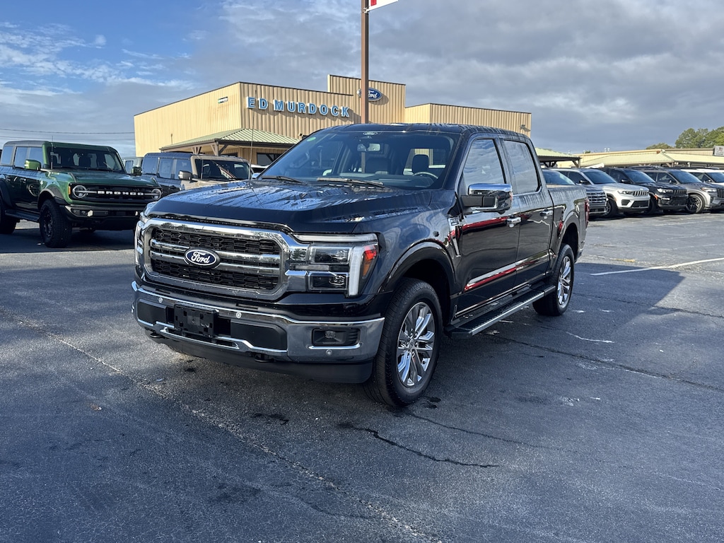 Black Metallic 2025 Ford F-150 Lariat 4WD 10-Speed Automatic 3.5L V6 EcoBoost 2nd Row Heated Seats, 4-Wheel Disc Brakes, 4x4 FX4 Off-Road Bodyside Decal, 8 Speakers, ABS brakes, ActiveX Trimmed Bucket Seats, Adjustable pedals, Air Conditioning, Alloy wheels, AM/FM radio: SiriusXM with 360L, Ambient Lighting - Ice Blue Color Only, Auto High-beam Headlights, Auto-dimming door mirrors, Auto-dimming Rear-View mirror, Automatic temperature control, Brake assist, Bumpers: chrome, Chrome wheels, Compass, Console Worksurface, Delay-off headlights, Driver door bin, Driver vanity mirror, Dual front impact airbags, Dual front side impact airbags, Electronic Locking w/3.31 Axle Ratio, Electronic Stability Control, Emergency communication system: SYNC 4 911 Assist, Equipment Group 502A High, Front anti-roll bar, Front Bucket Seats, Front Center Armrest, Front dual zone A/C, Front fog lights, Front reading lights, Front wheel independent suspension, Fully automatic headlights, FX4 Off-Road Package, Garage door transmitter, Heads-Up Display, Heated door mirrors, Heated front seats, Heated steering wheel, Hill Descent Control, Illuminated Driver & Passenger Visors, Illuminated entry, Integrated Trailer Brake Controller, Low tire pressure warning, Memory seat, Mobile Office Package, Monotube Rear Shocks, Navigation system: Connected Navigation, Occupant sensing airbag, Off-Road Tuned Front Shock Absorbers, Outside temperature display, Overhead airbag, Overhead console, Panic alarm, Partitioned Lockable Rear Storage, Passenger door bin, Passenger vanity mirror, Pedal memory, Power door mirrors, Power driver seat, Power passenger seat, Power steering, Power windows, Power-Sliding Rear Window, Radio data system, Radio: B&O Sound System by Bang & Olufsen, Radio: B&O Unleashed Sound System by Bang & Olufsen, Rain sensing wipers, Rear reading lights, Rear seat center armrest, Rear step bumper, Rear window defroster, Remote keyless entry, Rock Crawl Mode, Security system, Speed control, Split folding rear seat, Steering wheel mounted audio controls, SYNC 4 w/Enhanced Voice Recognition, Tachometer, Telescoping steering wheel, Tilt steering wheel, Tow/Haul Package, Traction control, Tray Style Floor Liner w/o Carpet Mats, Trip computer, Turn signal indicator mirrors, Variably intermittent wipers, Ventilated front seats, Voltmeter, Wheels: 18" Chrome-Like PVD, Wheels: 20" Chrome-Like PVD, Wireless Charging.