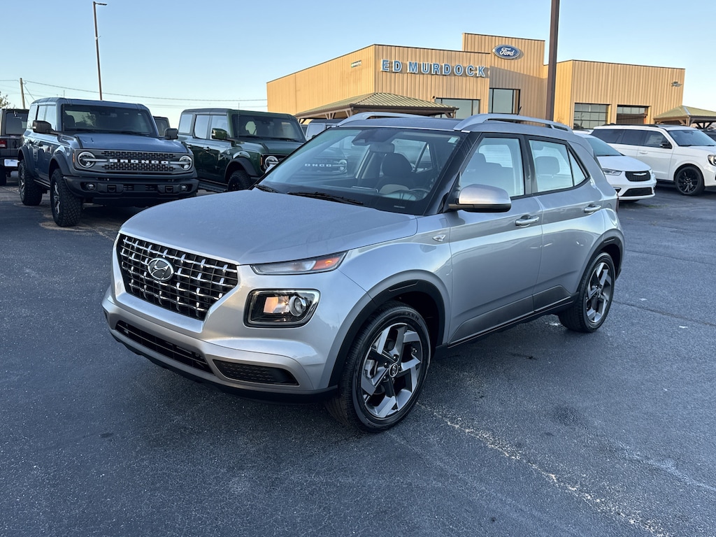 Shimmering Silver 2024 Hyundai Venue SEL FWD CVT I4 4-Wheel Disc Brakes, 6 Speakers, ABS brakes, Air Conditioning, All-Weather Floor Mats, AM/FM radio, Apple CarPlay & Android Auto, Auto High-beam Headlights, Automatic temperature control, Brake assist, Bumpers: body-color, Cargo Tray, Cloth Seat Trim, Delay-off headlights, Driver door bin, Driver vanity mirror, Dual front impact airbags, Dual front side impact airbags, Electronic Stability Control, First Aid Kit, Front anti-roll bar, Front Bucket Seats, Front Center Armrest, Front reading lights, Front wheel independent suspension, Fully automatic headlights, Illuminated entry, Leather Shift Knob, Leather steering wheel, Low tire pressure warning, Occupant sensing airbag, Option Group 01, Outside temperature display, Overhead airbag, Overhead console, Passenger vanity mirror, Power door mirrors, Power moonroof, Power steering, Power windows, Radio: AM/FM/HD Display Audio, Rear Bumper Applique, Rear Seat Cup Holder, Rear window defroster, Remote keyless entry, Roof rack: rails only, Security system, Speed control, Speed-sensing steering, Split folding rear seat, Spoiler, Tachometer, Telescoping steering wheel, Tilt steering wheel, Traction control, Trip computer.