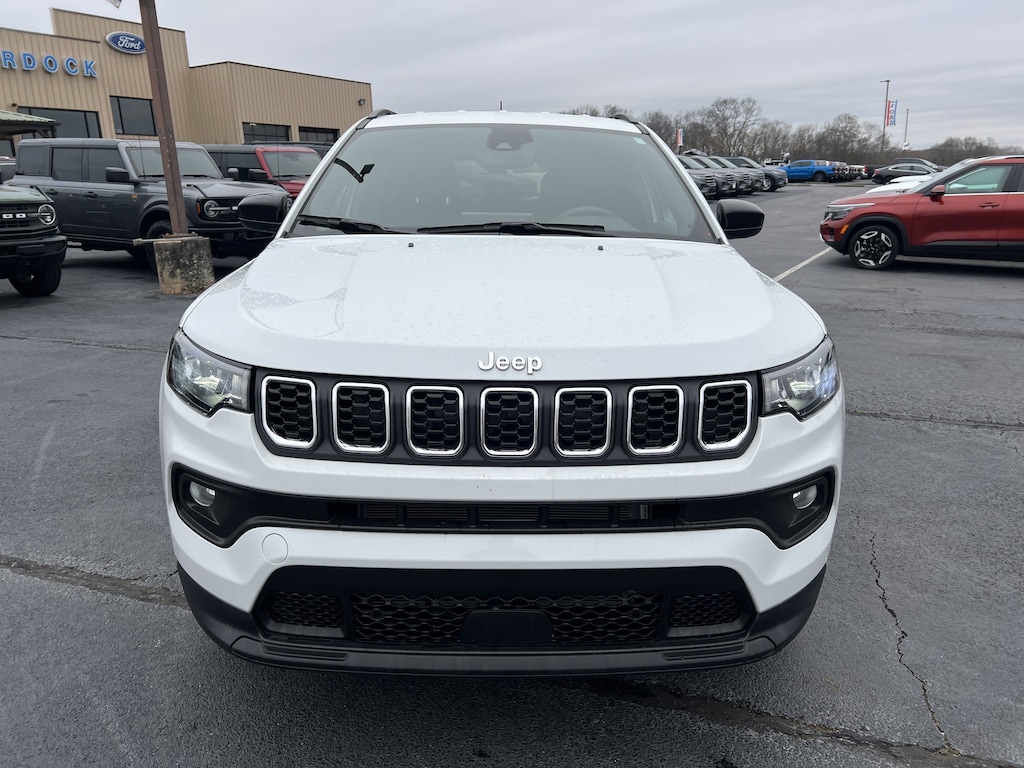 Certified. Bright White Clearcoat 2024 Jeep Compass Latitude 4WD 8-Speed Automatic 2.0L I4 DOHC 4-Wheel Disc Brakes, 6 Speakers, ABS brakes, Air Conditioning, Alloy wheels, AM/FM radio: SiriusXM, Auto High-beam Headlights, Brake assist, Bumpers: body-color, Compass, Delay-off headlights, Driver door bin, Driver vanity mirror, Dual front impact airbags, Dual front side impact airbags, Electronic Stability Control, Emergency communication system: Jeep Connect, Four wheel independent suspension, Front anti-roll bar, Front Bucket Seats, Front fog lights, Front reading lights, Fully automatic headlights, Heated door mirrors, Illuminated entry, Knee airbag, Leather Shift Knob, Leather steering wheel, Low tire pressure warning, Occupant sensing airbag, Outside temperature display, Overhead airbag, Overhead console, Panic alarm, ParkView Rear Back-Up Camera, Passenger vanity mirror, Power door mirrors, Power steering, Power windows, Premium Cloth/Vinyl Bucket Seats, Quick Order Package 29J Latitude, Radio: Uconnect 5 w/10.1" Display, Rear anti-roll bar, Rear seat center armrest, Rear window defroster, Remote keyless entry, Security system, Speed control, Spoiler, Steering wheel mounted audio controls, Tachometer, Telescoping steering wheel, Tilt steering wheel, Traction control, Trip computer.